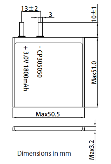 3.0 Volt - Li-MnO2 Pouch Battery CP305050