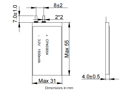 3.0 Volt - Li-MnO2 Pouch Battery CP403054
