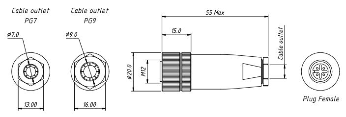 M12 Plug Female Connector,Straight,A B D Coding KLS15-M12A-P2 & KLS15-M12B-P2 & KLS15-M12D-P2 |