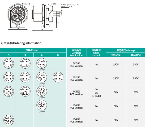 03: Number of Contacts 3,4,5,6,8Pins Screw: PG9 or M16x1.5