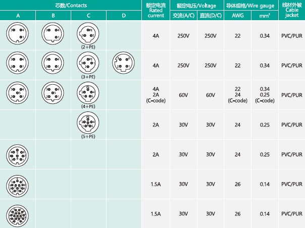 Contacts Poles: 3,4,5,6,8,12,17 Pin