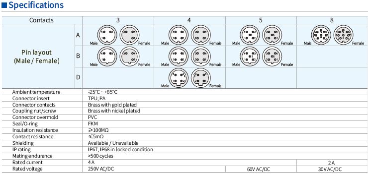 The M12 metric size A-Coding connectors, based on IEC 61076-2-101 standard, it is the most commonly used connector in the factory automation. M12 A-Coding connectors mainly designed for sensor and actuator devices. CABLEFORCE M12 A-Coding connectors are developed and designed for harsh industrial and climatic environments, e.g. High temperature range endurance, Hydrolysis resistant, Oil resistant, Corrosion resistant, UV-Resistant, Abrasion resistant, Bending and Drag Chain applicable.