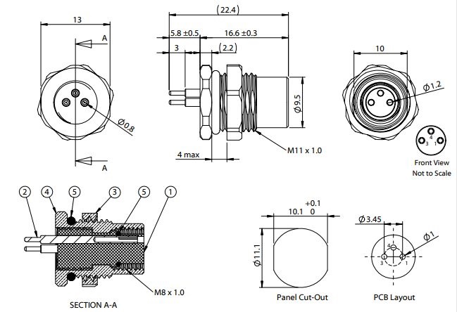 S1:PCB 180°, Panel mount, Front lock, Female 03: Number of Contacts 3,4,5,6,8Pins