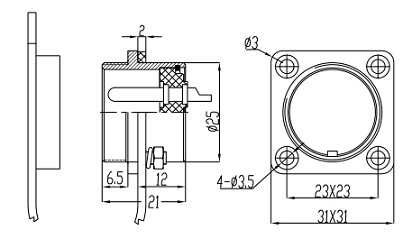 M3-Square Flange Receptacle Pin M4-Round Flange Receptacle Pin