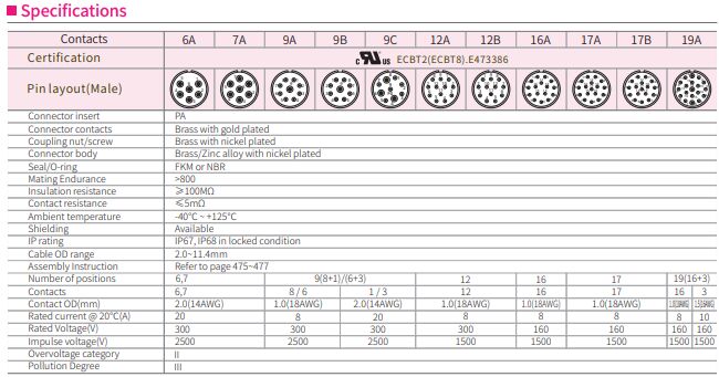 (2) pins:6A,7A,9A,9B,9C,12A,12B,16A,17A,17B,19A