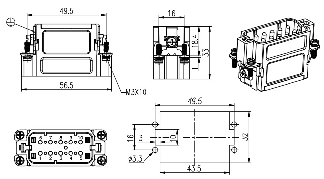 Male Inserts,Contacts 10+PE,Spring connection,16A 250V KLS1-HA-010MS |