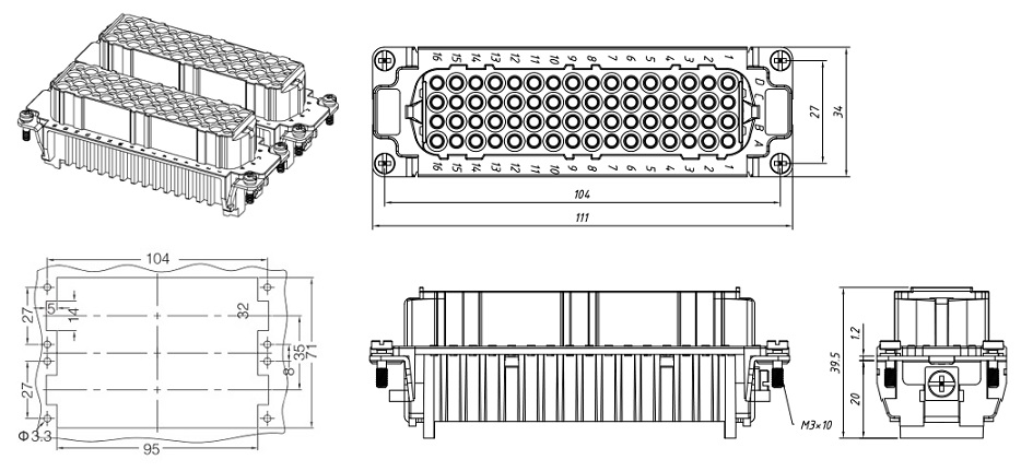 Female Inserts,Contacts 128+PE,Crimp connection,10A 250V KLS1-HD-128FC |