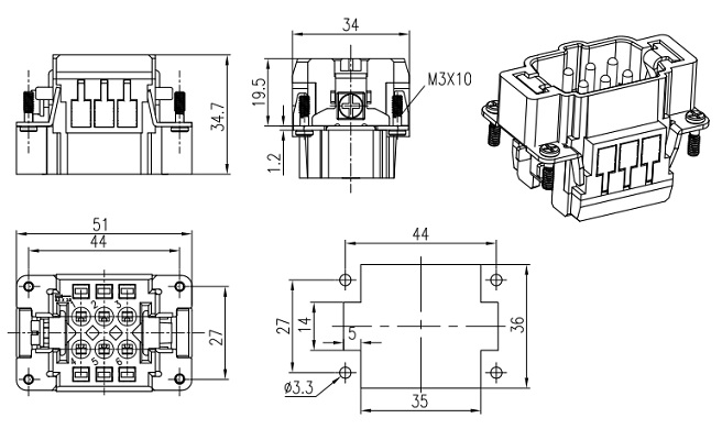 Male Inserts,Contacts 6+PE,Spring connection,16A 500V KLS1-HE-006MSB |