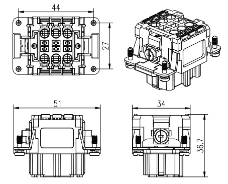 Female Inserts,Contacts 6+PE,Spring connection(quick),16A 500V KLS1-HE-006FQP |