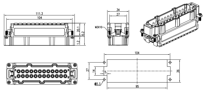 Male Inserts,Contacts 24+PE,Spring connection(quick),16A 500V KLS1-HE-024MQP |