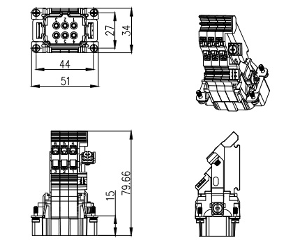 Male Inserts,Contacts 6+PE,Spring connection(quick),16A 500V KLS1-HEAV-006MQR & KLS1-HEAV-006MQL |