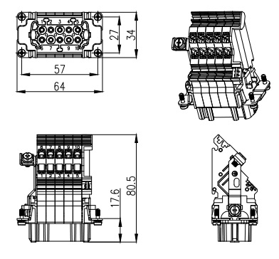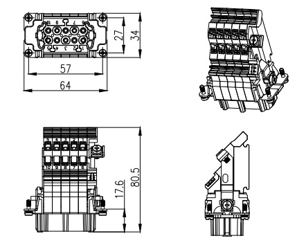 Female Inserts,Contacts 10+PE,Spring connection(quick),16A 500V KLS1-HEAV-010-FQR & KLS1-HEAV-010-FQL |