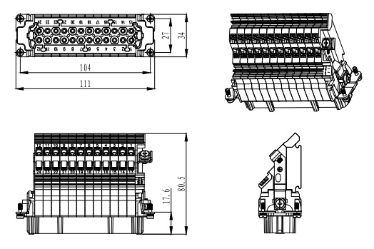 Female Inserts,Contacts 24+PE,Spring connection(quick),16A 500V KLS1-HEAV-024-FQR & KLS1-HEAV-024-FQL |