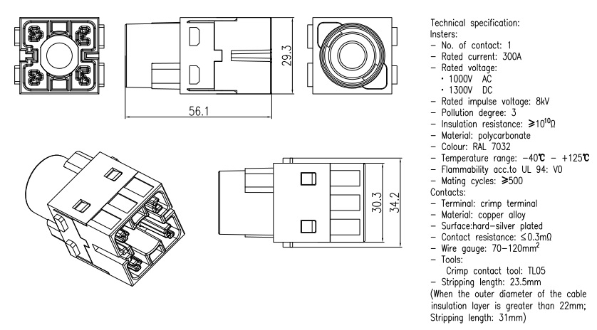 Power module,Crimp connection,Contacts 1,Female,200A/1000V