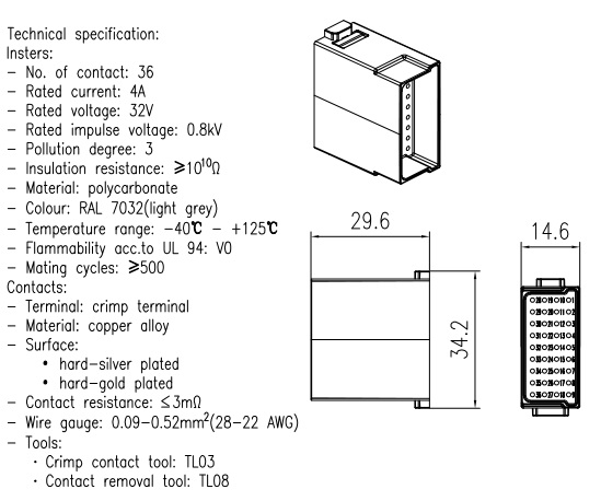 Signal module,Crimp connection,Contacts 36,Female,4A/32V