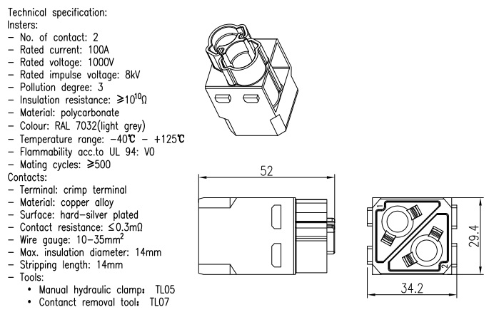 Power module,Crimp connection,Contacts 1,Female,100A/1000V