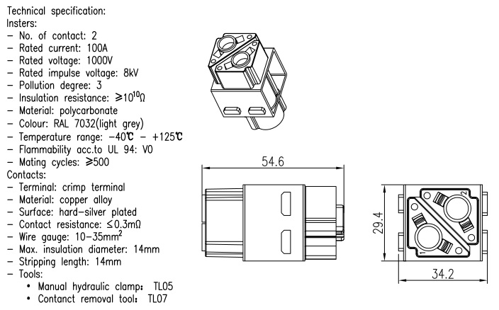 Power module,Crimp connection,Contacts 1,Female,200A/1000V