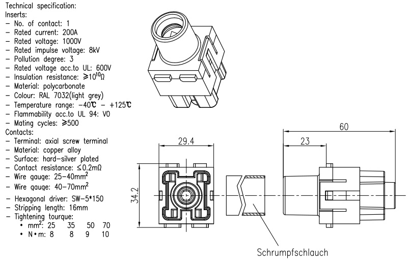 Power module,Axial bolt connection,Contacts 1,Female,200A/1000V KLS1-H2MK-001.1-F & KLS1-H2MK-001.2-F |