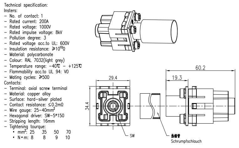 Power module,Axial bolt connection,Contacts 1,Female,200A/1000V KLS1-H2MKPE-001.1-F & KLS1-H2MKPE-001.2-F |