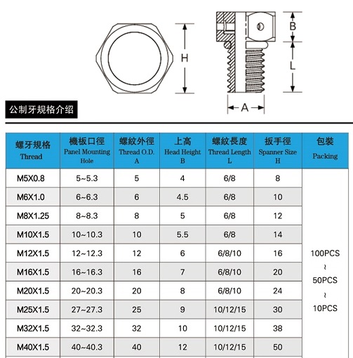 Thread:M5X0.8,M6X1.0,M8X1.25,M10X1.5,M12X1.5,M16X1.5,M20X1.5,M25X1.5,M32X1.5,M40X1.5