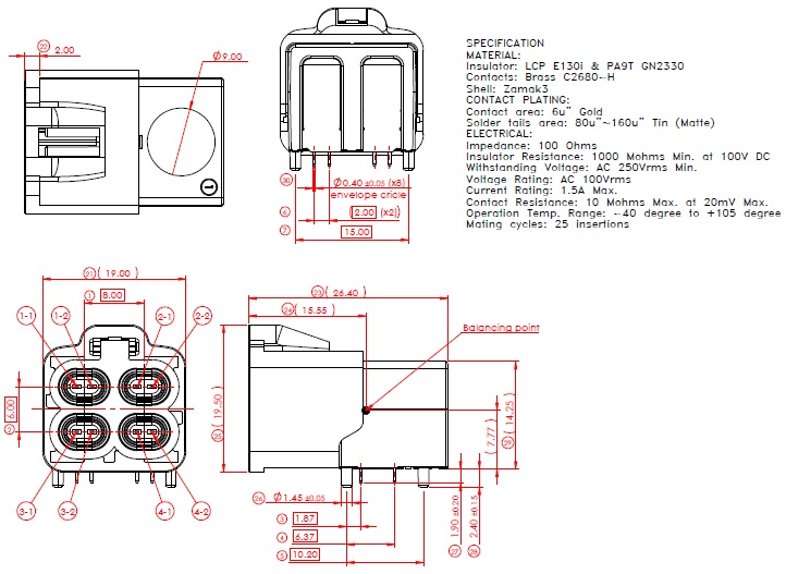 Return loss ≥ 30 dB, 0.01 GHz to 3 GHz