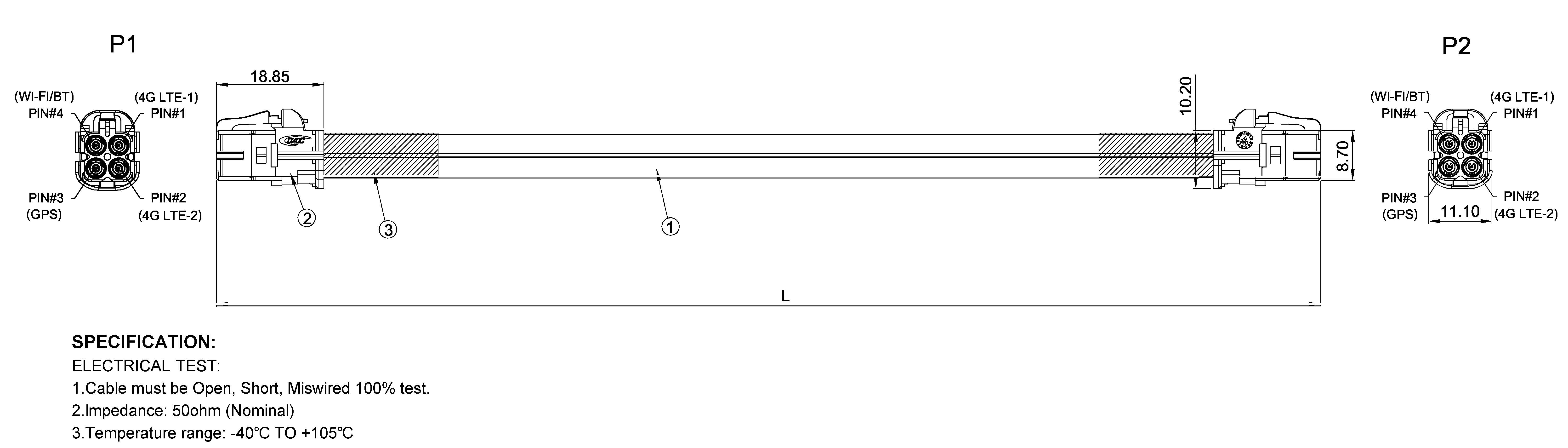 KLS1-MINI-FAKRA-CABLE-08-A/A-3-L100MM-RG174
