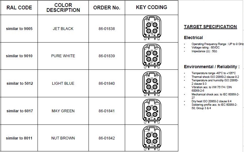 Mini fakra connector jack 2X2,spring pin for crimping RG174, RG316