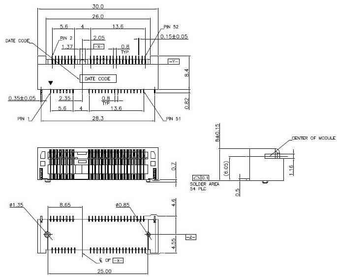 0.8mm Pitch Mini PCI Express connector 52P,Height 8.0mm