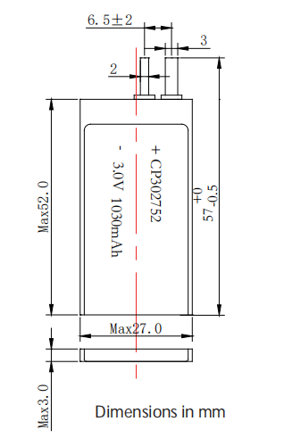 3.0 Volt - Li-MnO2 Pouch Battery CP302752