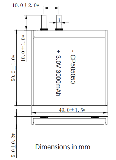 3.0 Volt - Li-MnO2 Pouch Battery CP505050