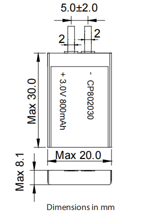 3.0 Volt - Li-MnO2 Pouch Battery CP802030