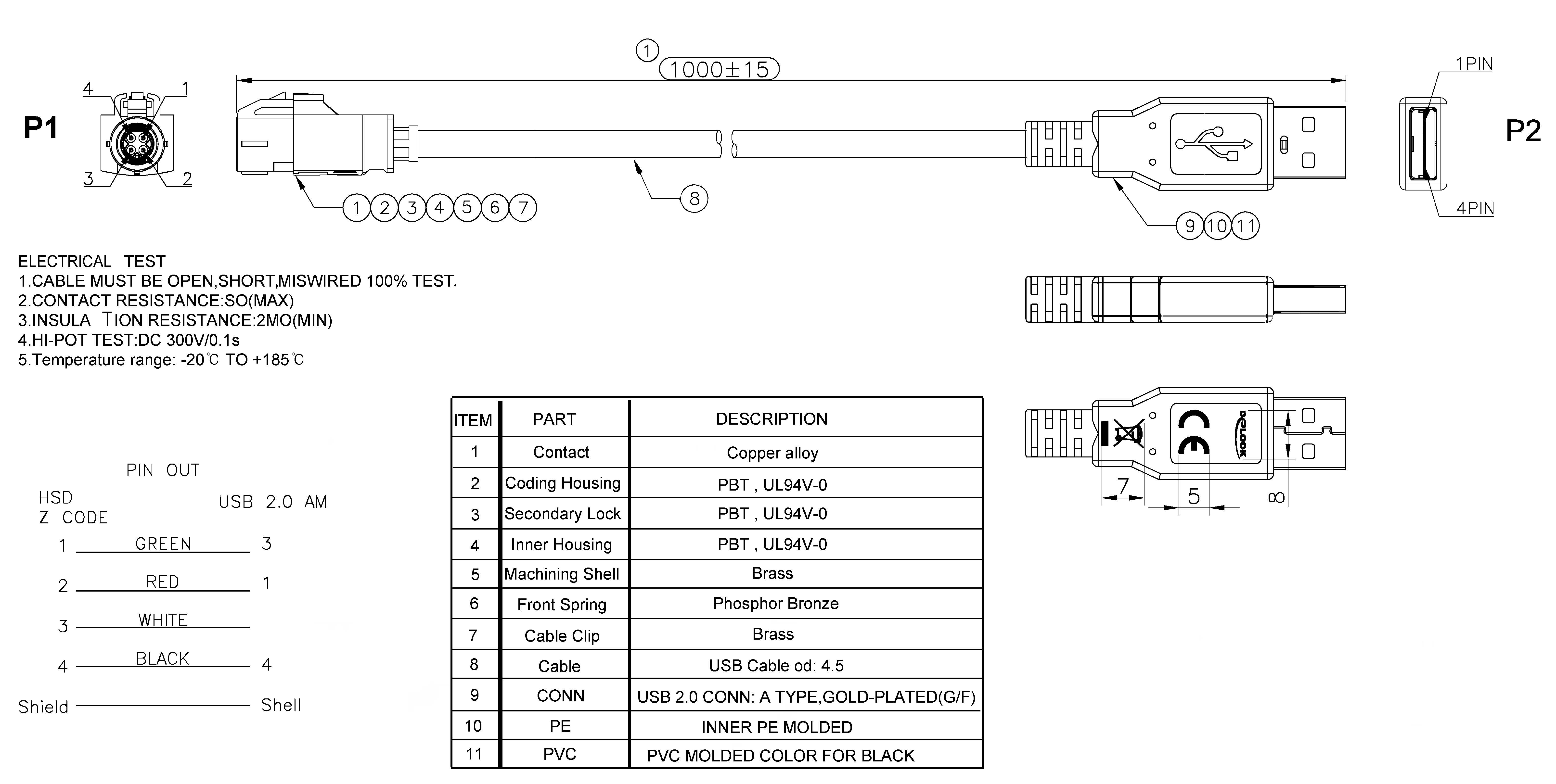 HSD Male To USB 2.0 A Type Male Cable KLS1-HSD-CABLE-02 |