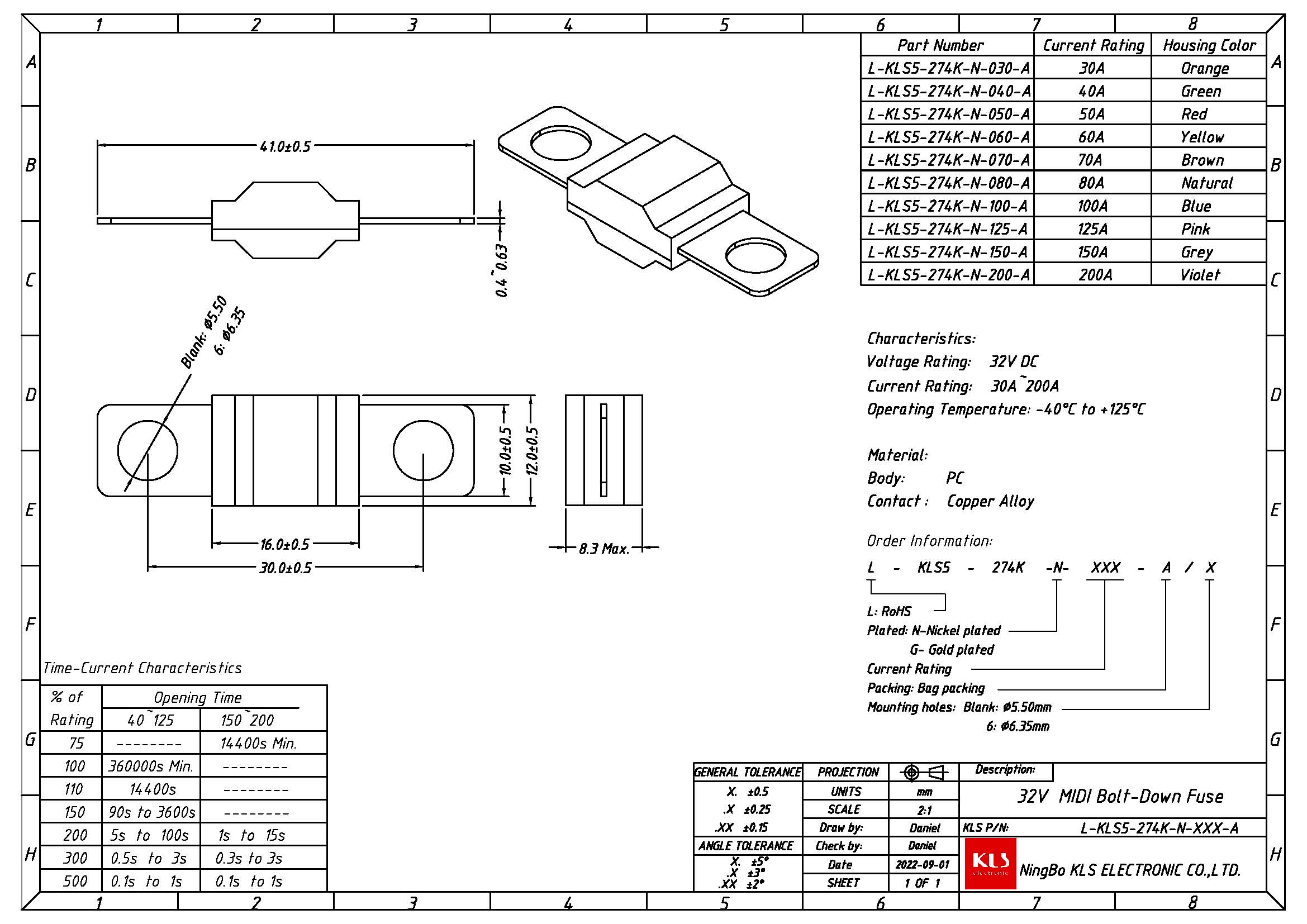 Automotive Bolt-down Fuse,Nickel,Rating Voltage 32VDC,Rating Current 50A,Bulk.