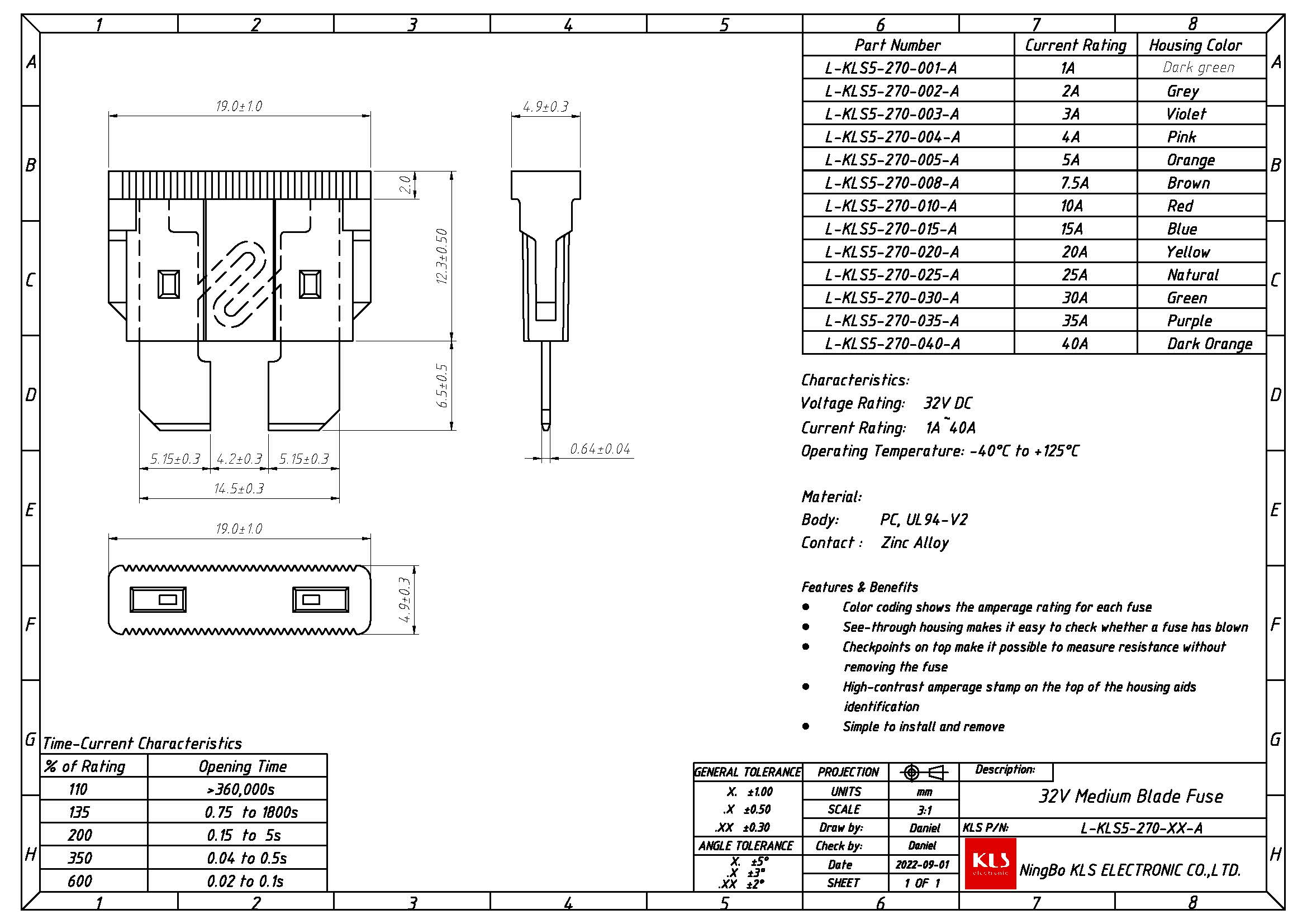 Medium Automotive Fuse Blade,Purplish red,Rating Voltage 32VDC,Rating Current 35A,Bulk.