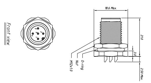 Order information KLS15-M12A-L203 M12: Screw type A: A Coding B: B Coding D: D Coding L2: Soldering ,Panel mount, Front lock,Male 03: Number of Contacts 3,4,5,6,8,12,17Pins