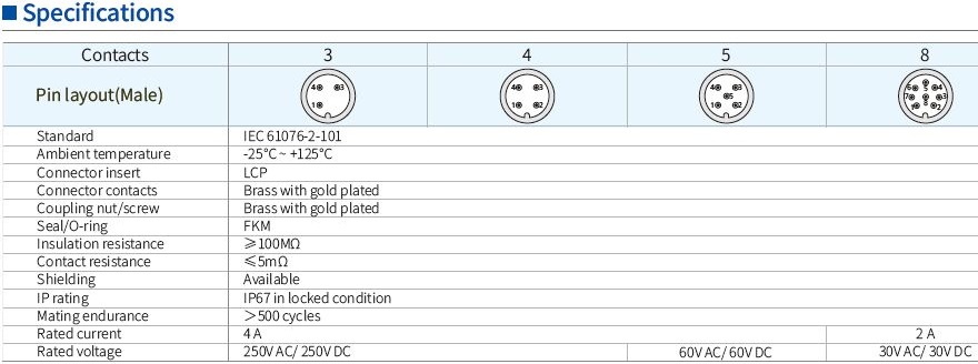 The M12 metric size A-Coding connectors, based on IEC 61076-2-101 standard, it is the most commonly used connector in the factory automation.