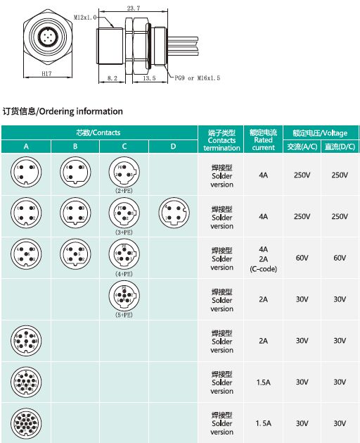 03: Number of Contacts 3,4,5,6,8Pins Screw: PG9 or M16x1.5