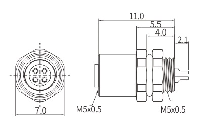 M5 circular connector is specially developed for the miniature sensor market and any application that requires multiple sensors within a very small area. The product line offers 3 and 4 Pins cable cord-sets and a range of panel-mounted receptacles. All connectors are either factory PVC/PUR over-molded or panel receptacles supplied with single wires or PCB solder pins, which is very compact and convenient for the application in narrow installment places.