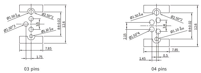 ● The receptacle counter part with PCB contacts or Solder type panel mount connectors