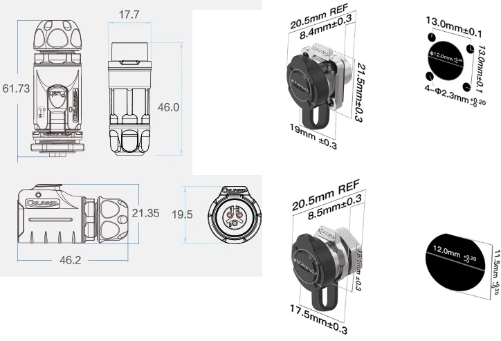 LP-12 Plastic circular power connectors,IP67,Locking screw