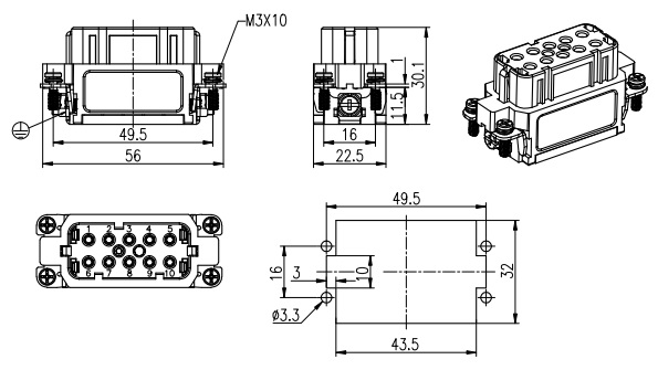 Female Inserts,Contacts 10+PE,Spring connection,16A 250V KLS1-HA-010FS |