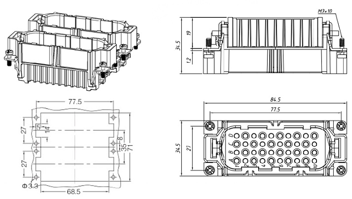 Male Inserts,Contacts 80+PE,Crimp connection,10A 250V KLS1-HD-080MC |