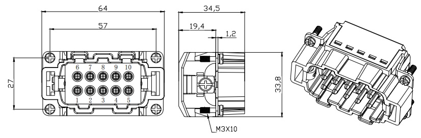 Male Inserts,Contacts 10+PE,Spring connection,16A 500V KLS1-HE-010MZ |