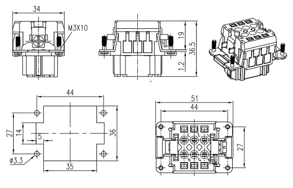 Female Inserts,Contacts 6+PE,Spring connection,16A 500V KLS1-HE-006FSB |