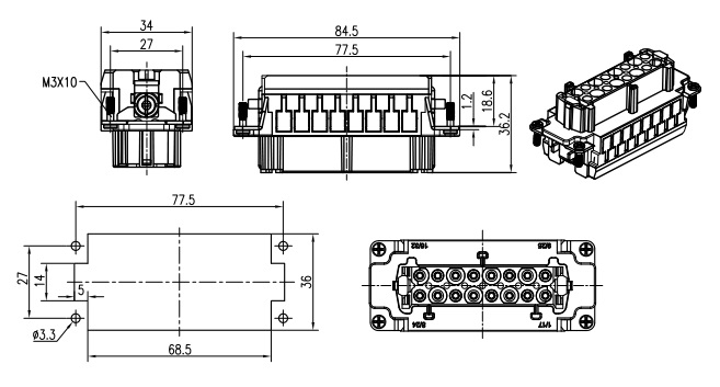 Wire gauge: 0.14-2.5mm² (26-14 AWG)