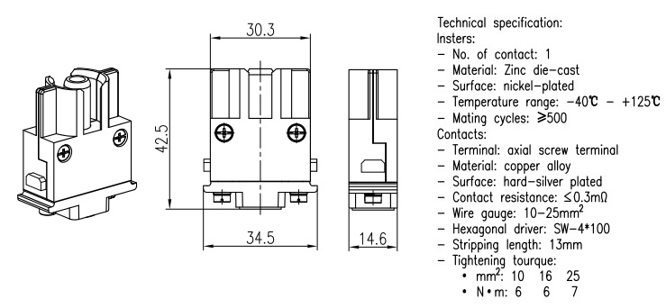 ower module,Axial bolt connection,Contacts 1,Female,Wire 16-35mm²