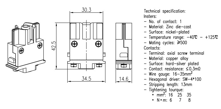 ower module,Axial bolt connection,Contacts 1,Female,Wire 16-35mm²