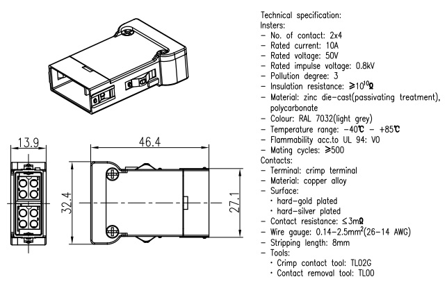 Signal module,Crimp connection,Female,Contacts 8,Wire 0.14-0.5mm²