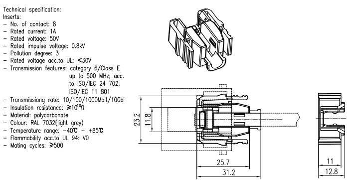 Signal module,Crimp connection,Female,Contacts 8+shield,Wire 0.14-2.5mm²