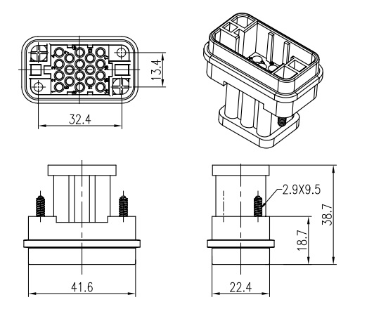 Male Inserts,Contacts 17+PE,Crimp connection,10A 250V KLS1-HQ-017-MC |